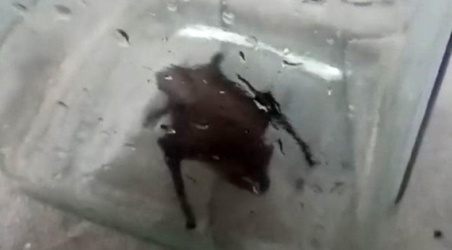 Yavru olduğu görülen yarasanın susamış olabileceğini düşünen ev sahibi kavanozun içine biraz su koyarak hava alması için ise kapağına delikler açtı.