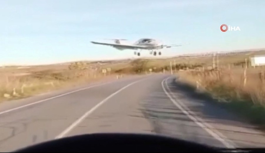 İstanbul Hazerfen Havalimanı'na iniş yapan bir eğitim uçağı, seyir halindeki minibüsü teğet geçti.