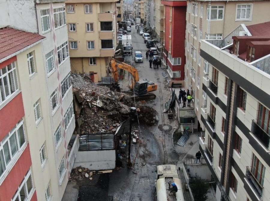 Maltepe Belediyesi tarafından Fındıklı Mahallesi'nde bulunan bir binanın yıkım çalışmaları sırasında göçük meydana geldi.