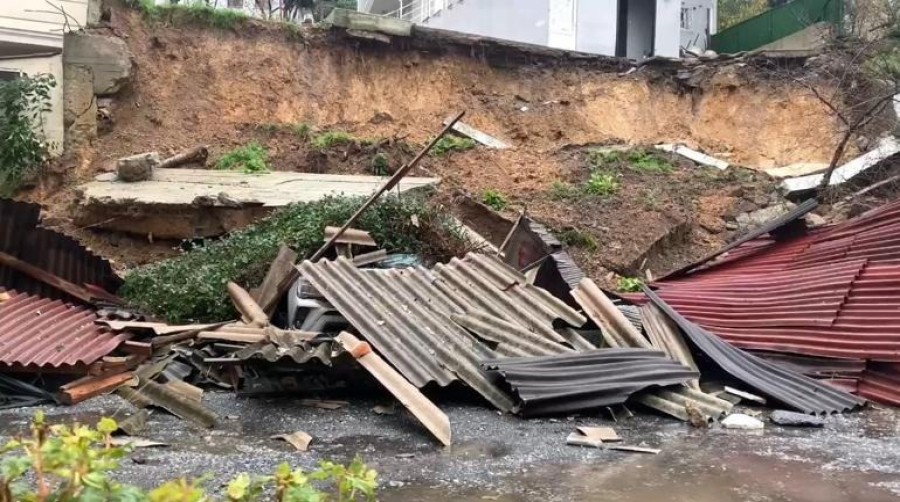 İstanbul Sarıyer Zümrütevler'de toprak kamasıyla birlikte istinat duvarı çöktü.