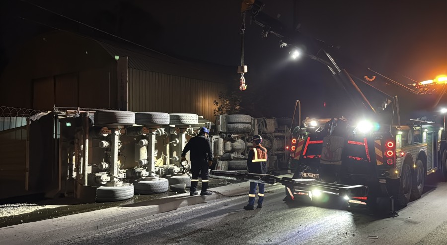 Kaza saat 21.30 sıralarında Eyüpsultan Kemerburgaz Cendere yolunda meydana geldi. Edinilen bilgiye göre sürücü Emre T. (35) idaresindeki 34 GEF 048 plakalı mıcır yüklü hafriyat kamyonu seyir halinde olduğu esnada sürücünün bilinmeyen bir nedenle direksiyon hakimiyetini kaybetmesi sonucu önce ters şeride girdi ardından yan yatarak devrildi.