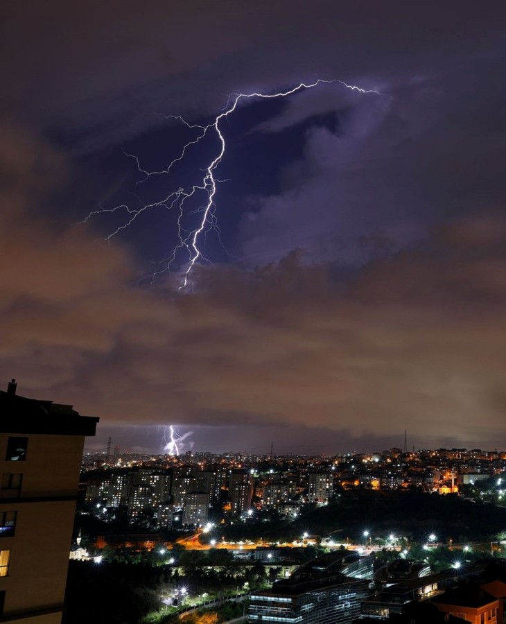 Anadolu Yakası'nda Beykoz, Kavacık, Kadıköy, Sultanbeyli ve Üsküdar'da, Avrupa Yakası'nda ise Bahçelievler, Kağıthane, Beylikdüzü'nde çakan şimşekler dikkat topladı.