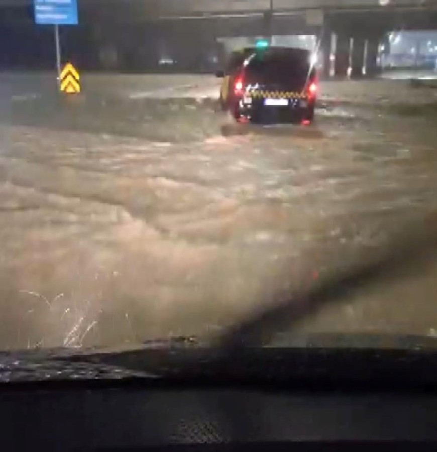 İstanbul Havalimanı yolunda da yağış nedeniyle su birikintileri oluşurken araçlar zorlukla hareket etti.