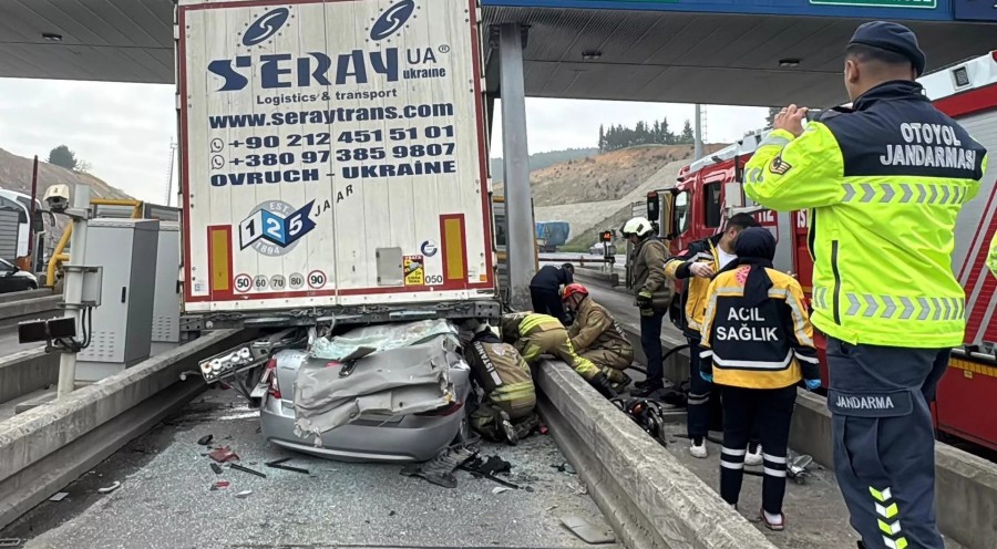 Edinilen bilgilere göre, Zonguldak'ta bir İMKB Teknik Lisesi'nde öğretmen olan Vahide Kalyoncu'nun (63) kullandığı 67 SF 722 plakalı Hyundai marka otomobil, gişelerde bulunan ve Ukrayna'dan geldiği öğrenilen AM 1689 HP plakalı mermer yüklü tıra arkadan hızla çarptı. İhbar üzerine olay yerine otoyol jandarması, itfaiye ve sağlık ekipleri sevk edildi.