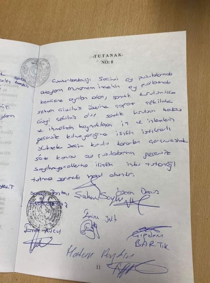 Cumhuriyet Halk Partisi'nden görevli İbrahim Kartal ise, YSK'ye tutanak gönderildiğini ifade ederek, "Biz katları dolaşıyorduk. Kimse itiraz etmemişti. Sabah 09.30 civarı itiraz başladı. Partilerin avukatları geldi. Neye karşılık bunu çizdiğini sordular. Tutanak tutuldu, ıslak imzalı olarak YSK İlçe Müdürlüğü'ne teslim edildi. Saat 13.00 oldu hala cevap gelmedi. Oradan bir karar gelseydi, insanlara pusulalar geçerli diye karar getirilseydi insanlar gerilmeyecekti. Her gelene anlatmaya çalışıyoruz. Resmi bir karar yok bu yüzden gerginlik yaşanıyor" dedi.