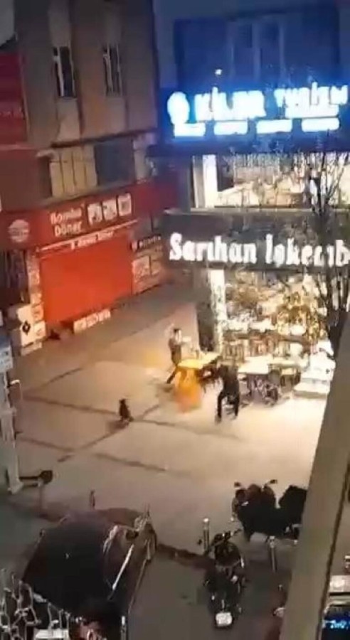 Zeytinburnu'nda pitbull cinsi köpeğiyle çorbacının önünden geçen bir kişi, masada oturanlarla 'Niye bakıyorsun' diyerek tartıştı. Aynı kişi, ayrıldıktan kısa süre sonra köpeği ve arkadaşıyla gelerek tartıştıkları müşterilere saldırdı. Sandalye ve sopalarla iş yerinin de camlarını kıran saldırganlar cep telefonu ile kaydedildi.