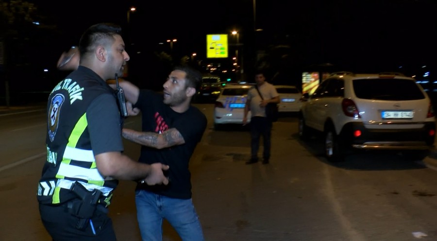 İstanbul Kadıköy sahil yolu üzerinde trafik polis ekipleri tarafından düzenlenen denetim sırasında çevrilen Ş. E., trafik polislerine ve basın mensuplarına zor anlar yaşattı. Bir sürücü ve arkadaşı ise 'polise mukavemet' suçundan gözaltına alındı.