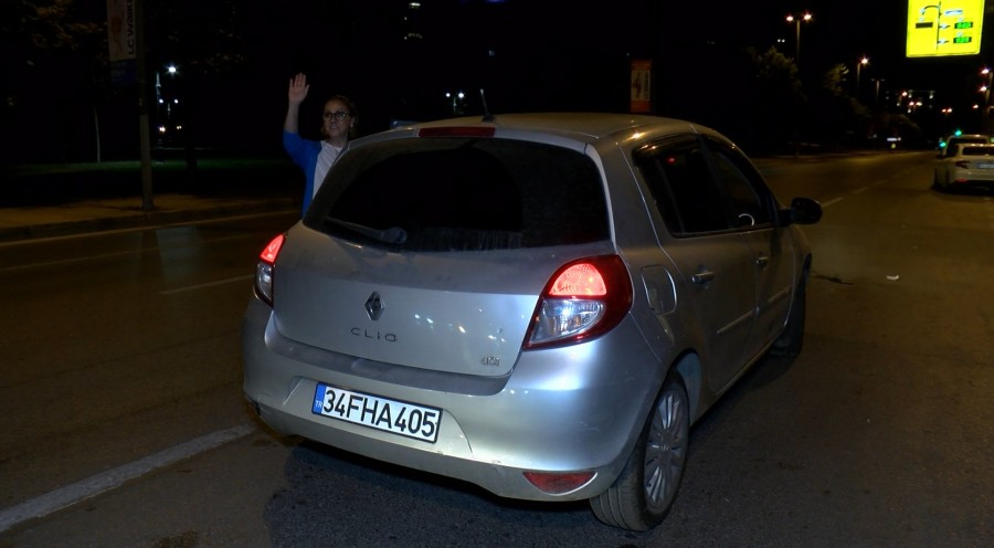 Denetimler sırasında emniyet kemeri takmadığı için çevrilen 34 FHA 405 plakalı otomobilin sürücüsü Ş. E., polis ekipleri ve basın mensuplarına tepki gösterdi.
