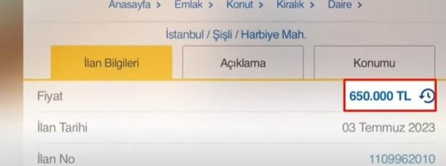 İstanbul Şişli'de bulunan 7 odalı bir daire için aylık 650 Bin TL kira isteniyor. İnternette yer alan ilanı görenler ilk başta gözlerine inanamasa da başka sitelerde de benzer ilanlarla karşılaştı. 4+1 daire için 390 Bin TL ve 300 Bin TL gibi aylık kiralar isteniyor.