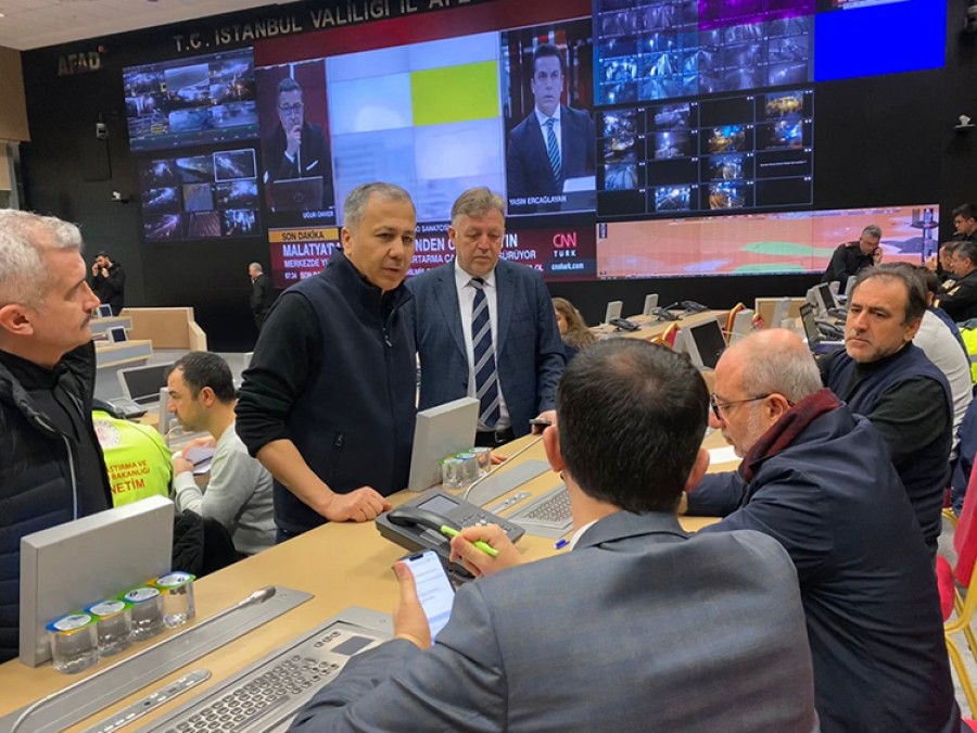 Vali Yerlikaya, sosyal medya hesabından yaptığı açıklamada, "Deprem, hemen sonra AFAD'dayız. İstanbul'dan deprem bölgesine ilk etapta 80 AFAD görevlisi, 27 akredite belediye ve STK, 968 Arama Kurtarma gönüllüsü, 4 K9 köpeği, 2 tır ve yardım malzemesi yola çıktı. Başımız sağ olsun. Yaralılarımıza acil şifalar diliyorum" şeklinde konuştu.