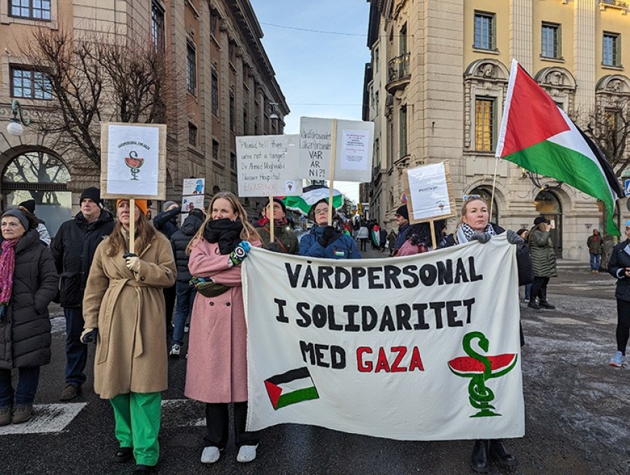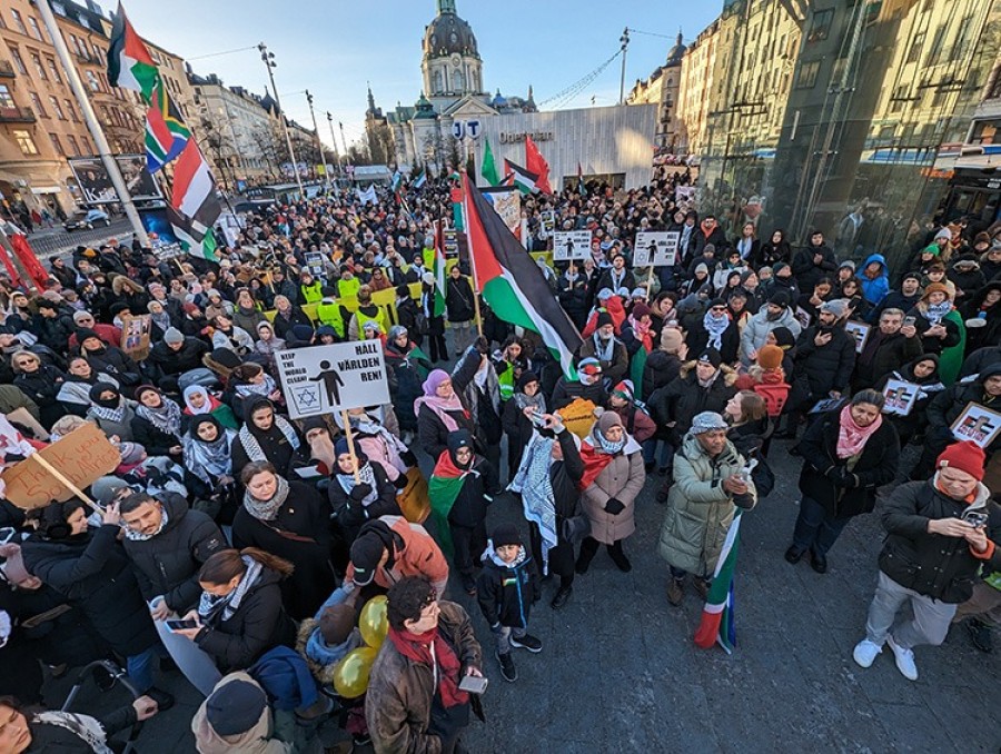 Ülkedeki çok sayıda sivil toplum kuruluşunun çağrısıyla Stockholm'deki Odenplan bölgesinde toplanan yaklaşık 15 bin gösterici, İsrail'in Gazze'de işlediği savaş suçunu durdurmasını istedi.
