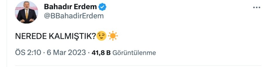 İyi Parti Genel Başkan Yardımcısı Bahadır Erdem, paylaşımında, "Nerede kalmıştık?" ifadesini kullandı.