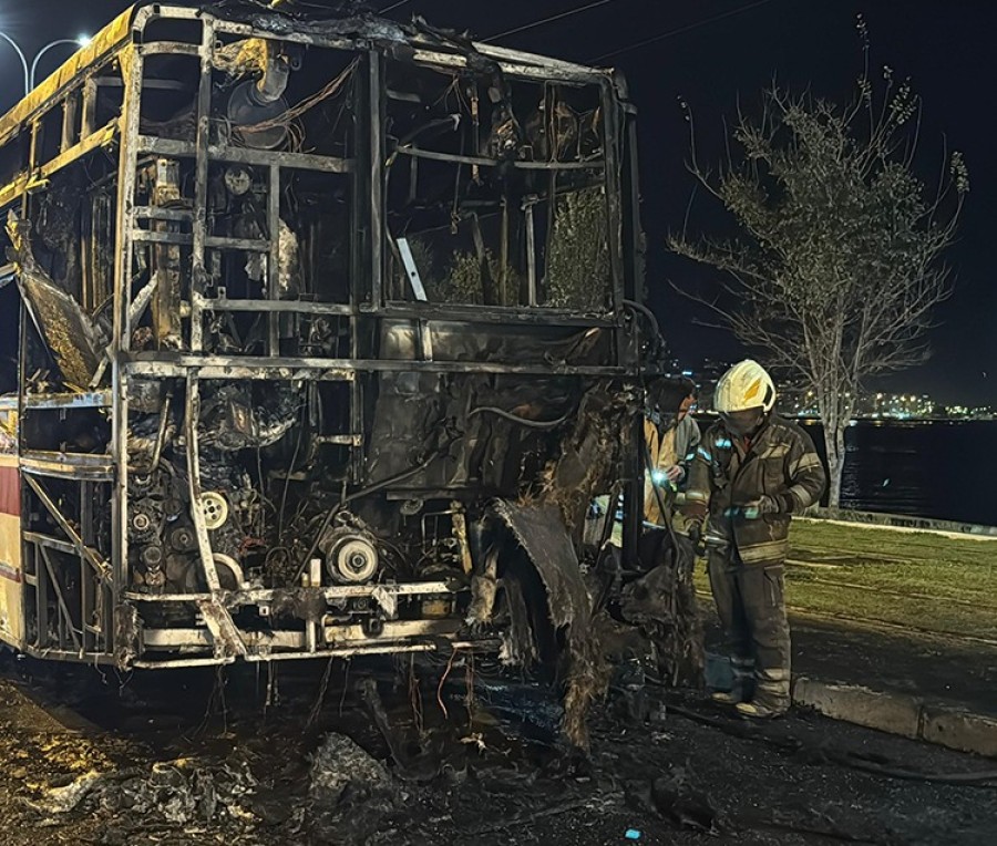 İzmir'in Konak ilçesinde, Büyükşehir Belediyesine ait otobüs seyir halindeyken çıkan yangın sebebiyle kullanılamaz hale geldi.
