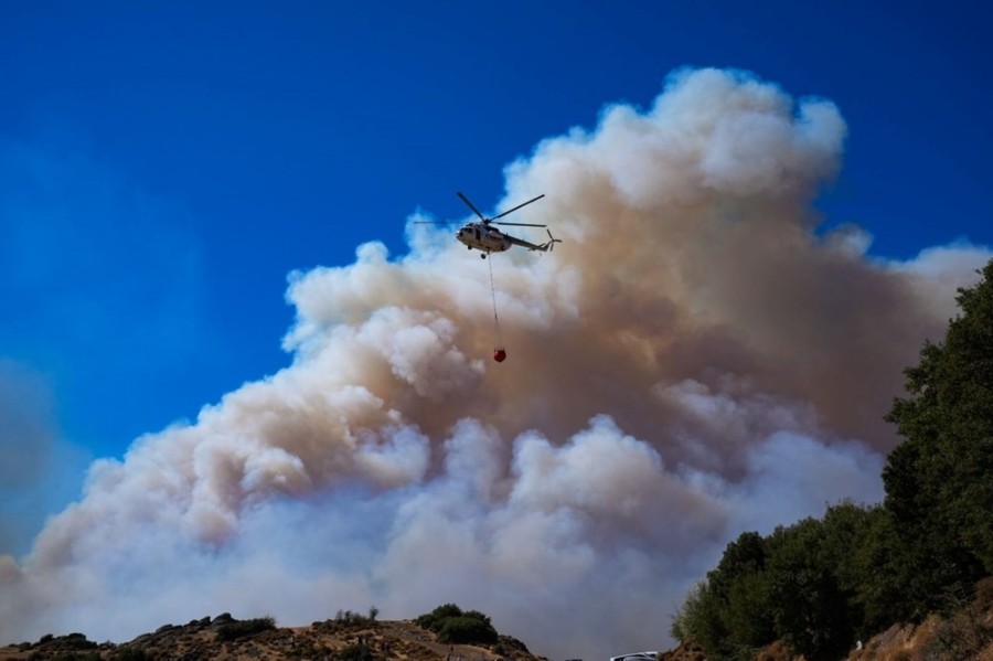 Öğleden sonra rüzgarın şiddetini düşürmesi üzerine hava araçları yeniden çalışmaya başladı. Helikopter ve uçaklar, yoğun olarak alevlerin bulunduğu alana su bırakıyor.