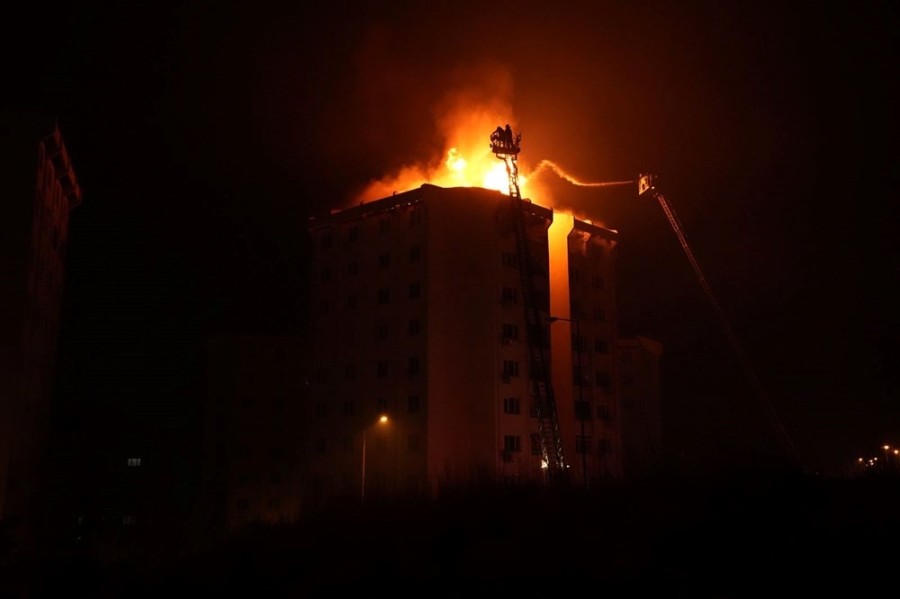 Zübeyde Hanım Mahallesi'ndeki TOKİ binalarından birine sıçrayan alevler apartmanda yangına neden oldu. Ekiplerin müdahalesi sürüyor.