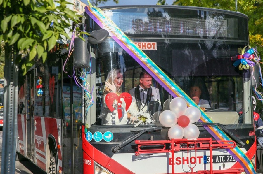 Çift, düğün aracı olarak ise Yeliz Önemli'nin görev yaptığı belediye otobüsünü seçti. Balonlar ve kurdelelerle süslenen otobüs, gelinin Bayraklı ilçesi Osmangazi Mahallesi'ndeki evinin önüne geldi. Gelin alma merasiminde çift, bando eşliğinde halay çekerek oyunlar oynadı.