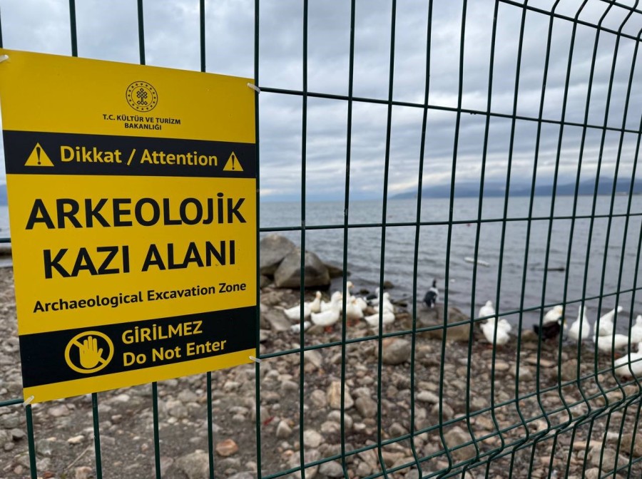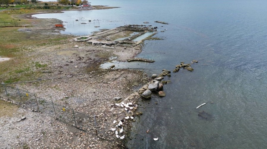 İznik Gölü'nde yaşanan su çekilmesi nedeniyle, 2014'te keşfedilen batık bazilika kalıntısının artık tamamen görünür hale geldi.