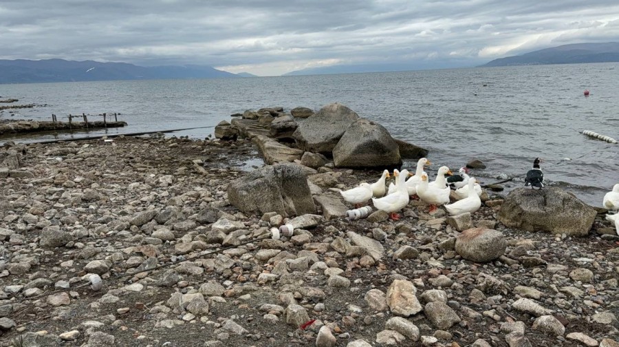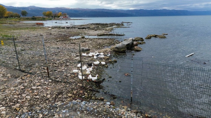 Bursa'da Marmara Bölgesi'nin en büyük gölü olan İznik Gölü'nde 10 yıl önce 2 metre derinlikte keşfedilen 2 bin yıllık bazilika, kuraklıkla birlikte artık tamamen su yüzeyine çıktı. Üzerinde ördeklerin gezdiği bazilika, dron ile havadan görüntülendi.