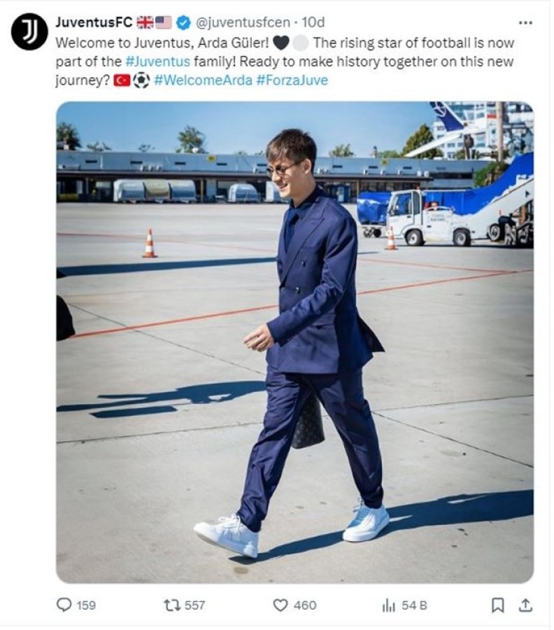 Yapılan paylaşımda "Juventus'a hoş geldin Arda Güler. Futbolun yükselen yıldızı artık Juventus ailesinin bir parçası. Bu yeni yolculukta birlikte tarih yazmaya hazır mısın?" ifadeleri kullanıldı.