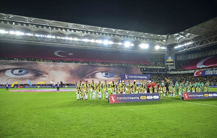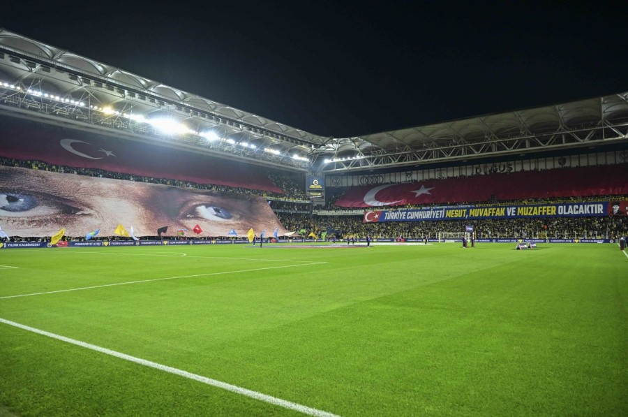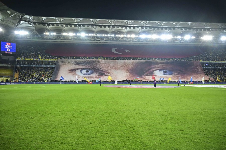 Tribünleri dolduran sarı-lacivertli taraftarlar, tribünlerde dev Türk bayrakları açarken, koreografide Mustafa Kemal Atatürk'ün tribünün tamamını kaplayan posterine yer verdi.