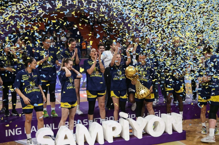 Kadınlar Basketbol Süper Ligi play-off final serisi üçüncü maçında ÇBK Mersin'i deplasmanda 80-56 yenerek seriyi 3-0'a taşıyan Fenerbahçe Alagöz Holding, düzenlenen törende şampiyonluk kupasını kaldırdı.