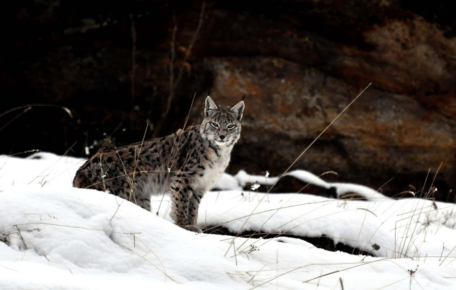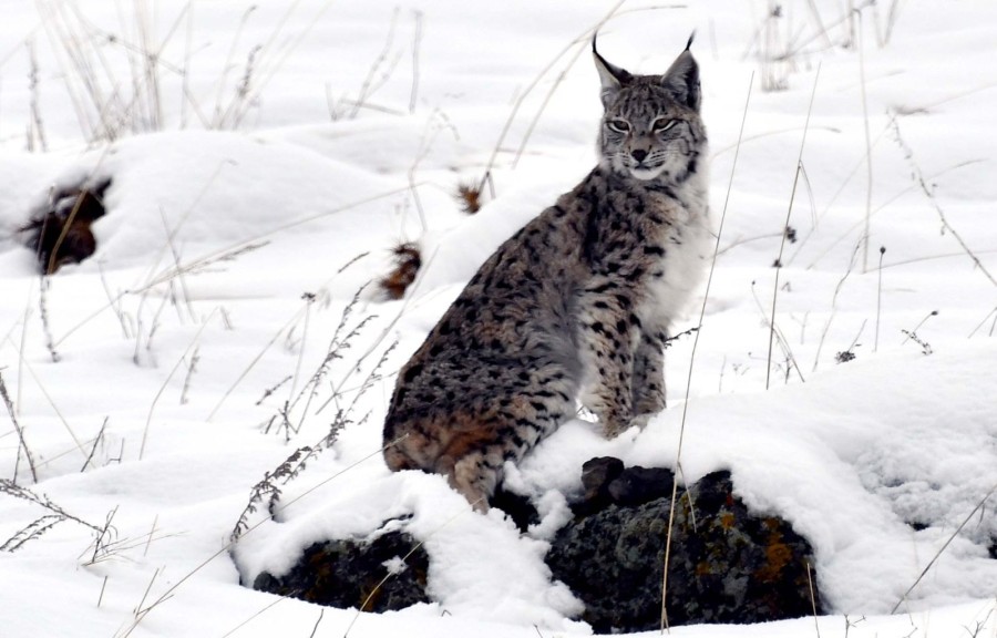 Av için genellikle karanlığı tercih eden, nesli tehlike altındaki Kafkas vaşağı, Kars'ın Sarıkamış ilçesinde karla kaplı arazide gündüz avlanırken görüntülendi.