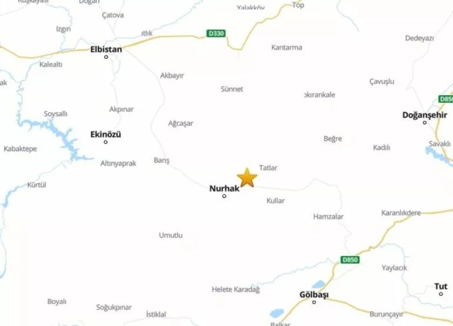 Kahramanmaraş'ın Nurhak ilçesinde 3.9 büyüklüğünde deprem meydana geldi.