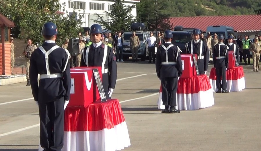 Uzman çavuşlar Mehmet Aykanat ve Orhan Burak Büyükçaylı ile Uzman Onbaşı Doğan Kızılateş için Tunceli il jandarma komutanlığında tören yapıldı.