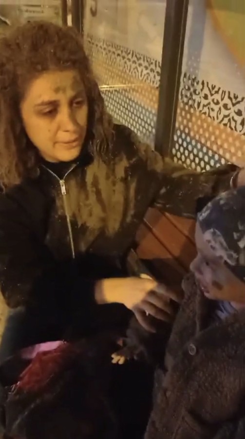 Pompadan dökülen harç, o esnada kaldırımda yürüyen anne ve 2 yaşındaki oğlunun üzerine döküldü. Anne ve oğlunun panik anları cep telefonu kamerasına yansıdı.