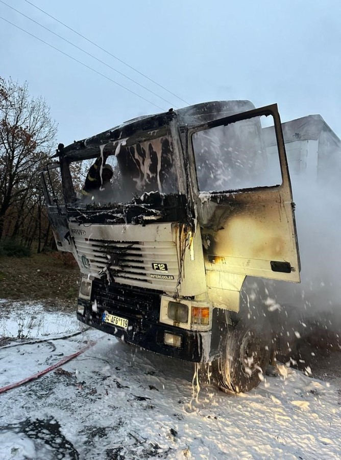 Edinilen bilgiye göre, R.A. idaresindeki 54 AFG 119 plakalı kamyon, Vize ilçesi Doğanca Köy Sapağı mevkiinde alev aldı.