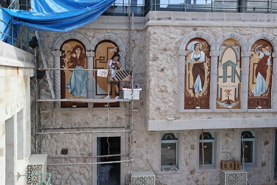 Nevşehir'in Göreme beldesinde yaşayan ressam Hatice Abalı, Kapadokya'daki butik otellerin duvarlarını tablolara dönüştürüyor.