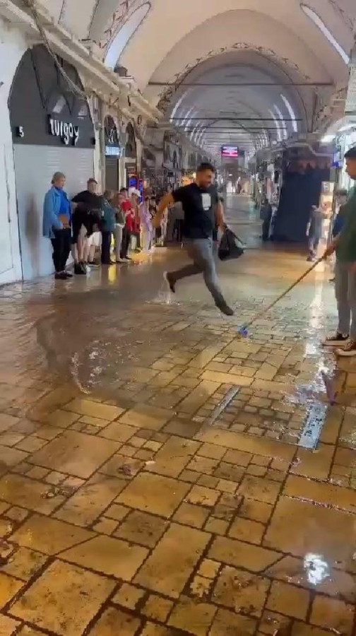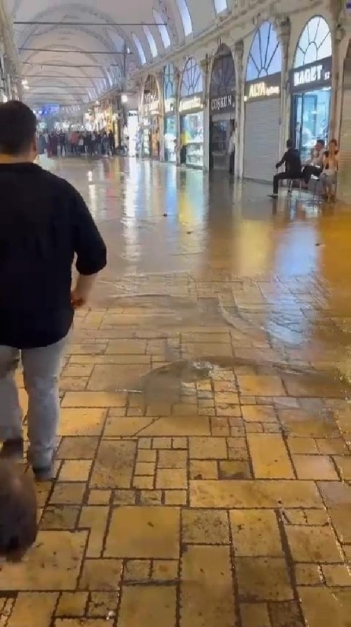 İstanbul'da etkili olan yağmurla Kapalıçarşı ve Tahtakale'yi su bastı.