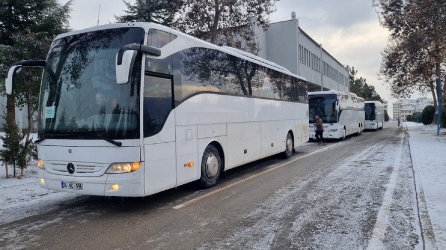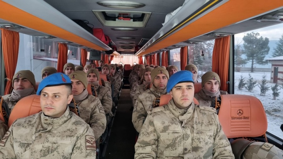 Safranbolu Jandarma Komando Eğitim Merkez Komutanı Jandarma Albay Yusuf Küçükbaşol'un emir, sevk ve idaresindeki Mehmetçik, otobüslerle Hatay'a doğru yolcu edildi.