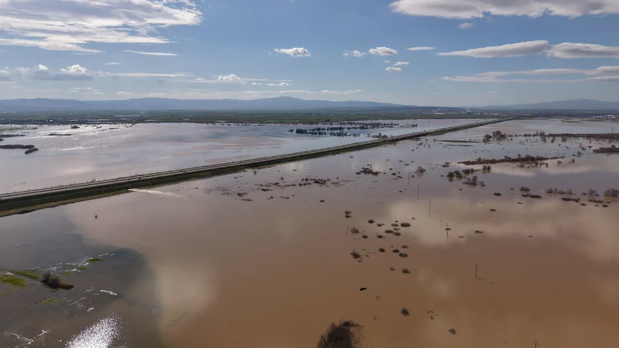 Karacabey Ovası'ndaki taşkın sahası, mera alanı, ekili ve dikili tarım arazilerini kapsayan yaklaşık 20 bin dekarlık alan su altında kaldı.