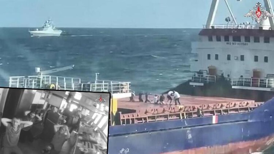 Rusya Savunma Bakanlığı, Karadeniz Filosu'ndan devriye gemisi Vasily Bykov'un Palau bandıralı 'Sukru Okan' adlı kuru yük gemisini durdurduğu ve Rus askerlerinin gemiye düzenlediği baskına ilişkin görüntüleri paylaştı.