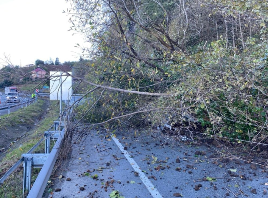 Yamaçtan koparak yola dökülen irili ufaklı kaya ve toprak parçaları ile kökünden sökülen ağacın devrildiği Kemalpaşa-Hopa kara yolu, tek yönlü ulaşıma kapandı.