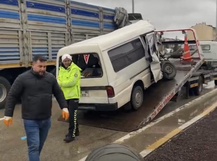 Minibüs, Bandırma istikametinde karşı şeritte seyreden E.A. idaresindeki 10 ABJ 53 plakalı tırla kafa kafaya çarpıştı.
