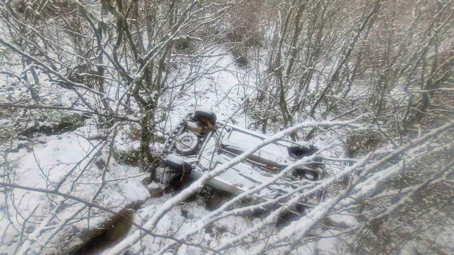 Kastamonu'nun Hanönü ilçesinde buzlanma nedeniyle yoldan çıkarak yaklaşık 20 metrelik şarampole yuvarlanan hafif ticari aracın sürücüsü yara almadan kurtuldu.