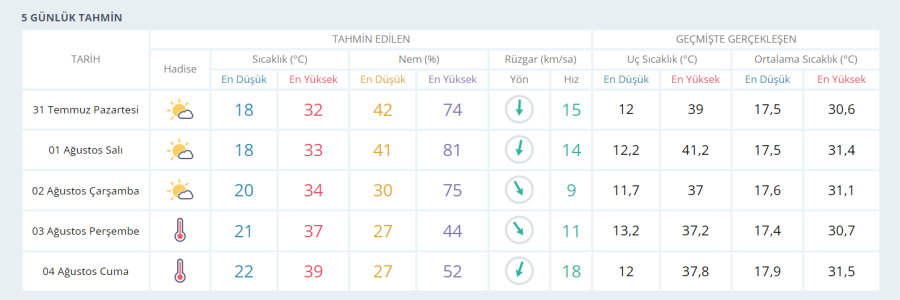 Meteoroloji Bursa'nın 5 günlük hava tahmin raporunu yayımladı.