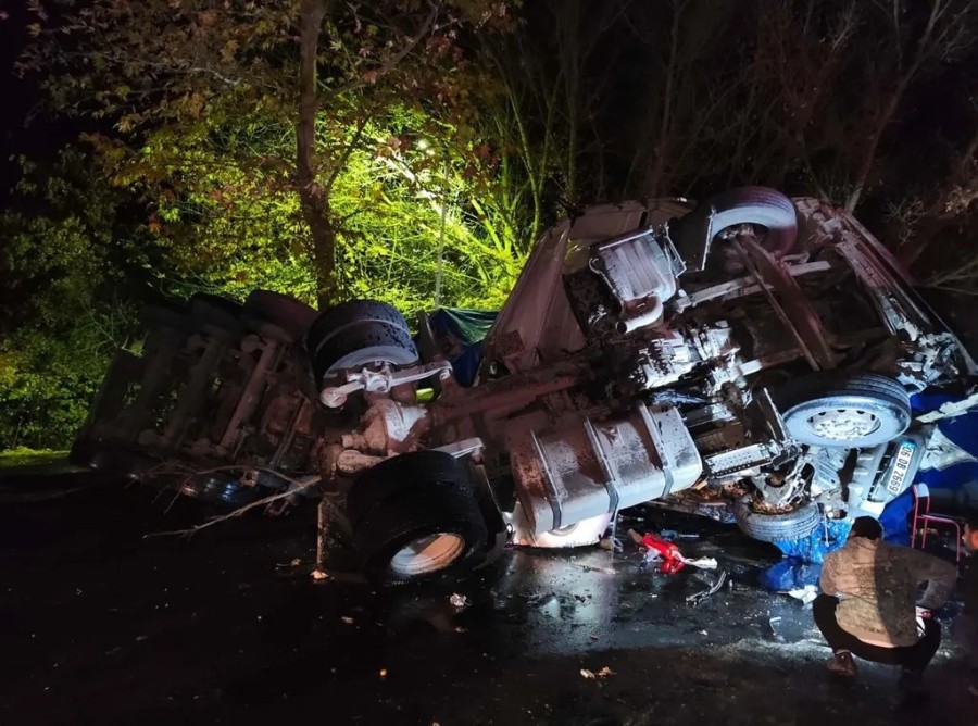 Balıkesir'in Dursunbey ilçesinde Kütahya yönüne giden Oğuzhan Varol idaresindeki sülfürik asit yüklü TIR, saat 05.30 sıralarında virajda şoförünün direksiyon kontrolünü yitirmesiyle yol kenarındaki şantiyeye girdi.