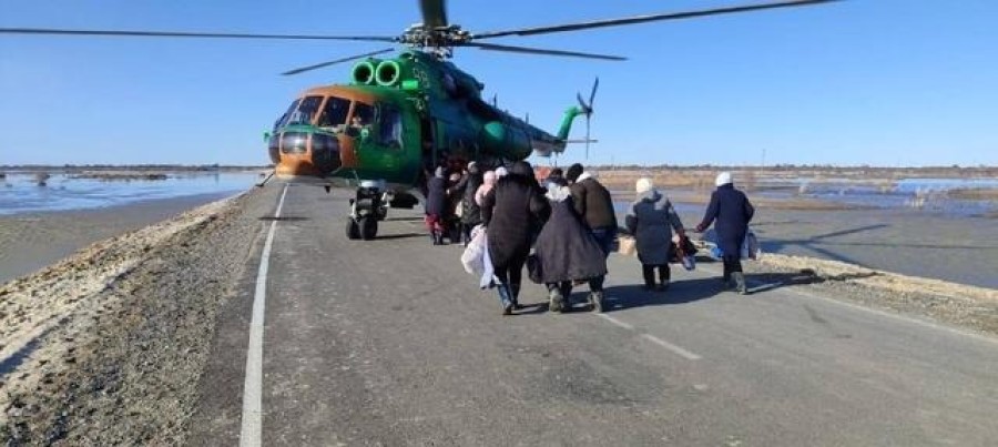 Kazakistan Acil Durumlar Bakanlığının paylaştığı görüntülerde tahliye çalışmalarında helikopterlerin kullanıldığı, insanların yanı sıra mahsur kalan evcil hayvanların da kurtarıldığı görüldü.