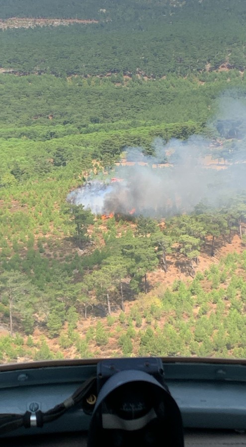Gözetleme kulelerinden görülen duman üzerine bölgeye 2 uçak, 1 helikopter, 5 arazör ve 2 su tankeri sevk edildi.