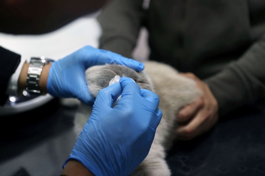 Ataberk Dursun, Scottish cinsi kedisi Yulaf'ın rahat nefes alamaması nedeniyle veteriner hekim İbrahim Özmen'e başvurdu.