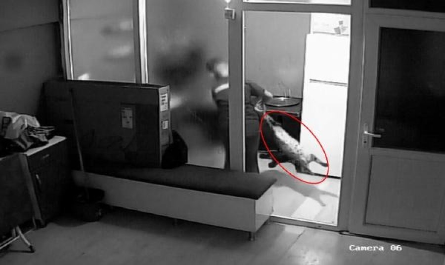 Kedinin genel durumunun iyi olmadığını gören Yiğit, şüphelenip darbedildiği düşüncesiyle iş yerinin güvenlik kamerasını inceledi.