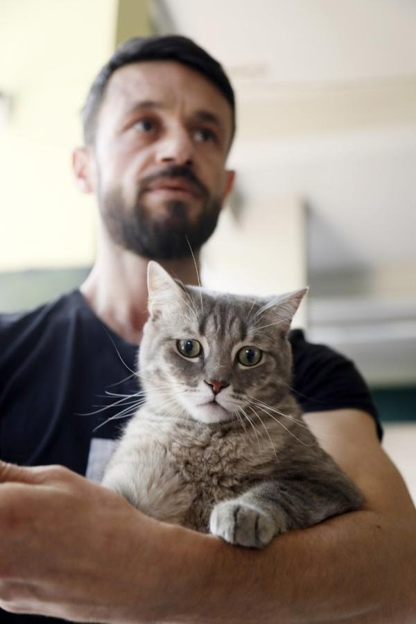 Mehmet Yiğit, 2 yıl önce sahiplenip, 'Çakıl' adını verdiği ve çalıştığı berber salonunda beslediği kedisinin tırnağının kırık olduğunu fark etti.