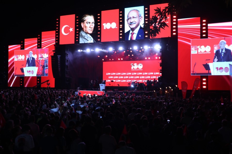 CHP'nin Türkiye'nin bağımsızlık savaşının ve onun devamında gerçekleşen devrimlerin öncüsü olduğunu söyleyen Kılıçdaroğlu, "CHP'nin tarihi, Türkiye Cumhuriyeti'nin tarihiyle özdeştir. 100 yıl boyunca Mustafa Kemal'in dediği gibi, 'Memleket ve milletin her türlü dayanaktan mahrum bırakıldığı, uğursuz bir hengamenin yaşandığı bir dönemde, herkesi çatısının altında buluşturan mukaddes, devrimci bir parti' olmaktan vazgeçmedik. Asla ve asla vazgeçmeyeceğiz. O nedenledir ki; CHP, Türkiye'nin içinden geçtiği bu sıkıntılı dönemde umutsuzluğu yıkacak tek adrestir. Çünkü; CHP, Türkiye'nin içinden geçtiği bu sıkıntılı dönemde umutsuzluk aşılanamayacak tek adrestir. Biz başaracağız; tek adam rejimine karşı, diktatörlüğüne karşı elbette biz kazanacağız. Cumhuriyetimizi demokrasi ile taçlandıracağız. Yaşasın Cumhuriyet Halk Partisi. Yaşasın Türkiye Cumhuriyeti" dedi.
