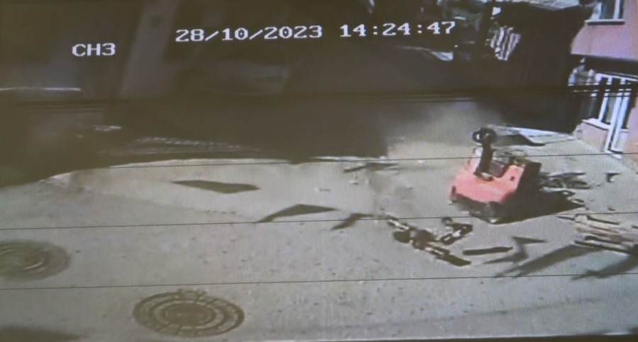 Olay, Tavşantepe Mahallesi Hacı Bektaşi Sokak'ta meydana geldi. Edinilen bilgiye göre, BİM markete ait ürünlerin yüklü olduğu transpaleti market görevlisi elinden kaçırdı. Kontrolden çıkan transpalet sokak boyunca yaklaşık 1 kilometre ilerlerken, ürünler yola savruldu. Son sürat inen transpalet sokağın başındaki doğalgaz kutusuna ardından, bir dükkanın önündeki kaldırıma çarparak devrildi. İki kişi hızla gelen transpaleti son anda fark ederken, altında kalmaktan kurtuldu. Çarptığı alanda bekleyen dört çocukta, adeta saniye farkıyla ölümden döndü. Yaşanan aksiyon dolu anlar ise güvenlik kameraları tarafından saniye saniye kaydedildi. Yokuşta düşen içecekler ise yaklaşık bir kilometre boyunca kendi kendine ilerledi. İçecek dolu şişelerin geldiği gören vatandaşlar da şaşkınlıklarını gizleyemedi.