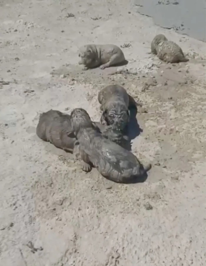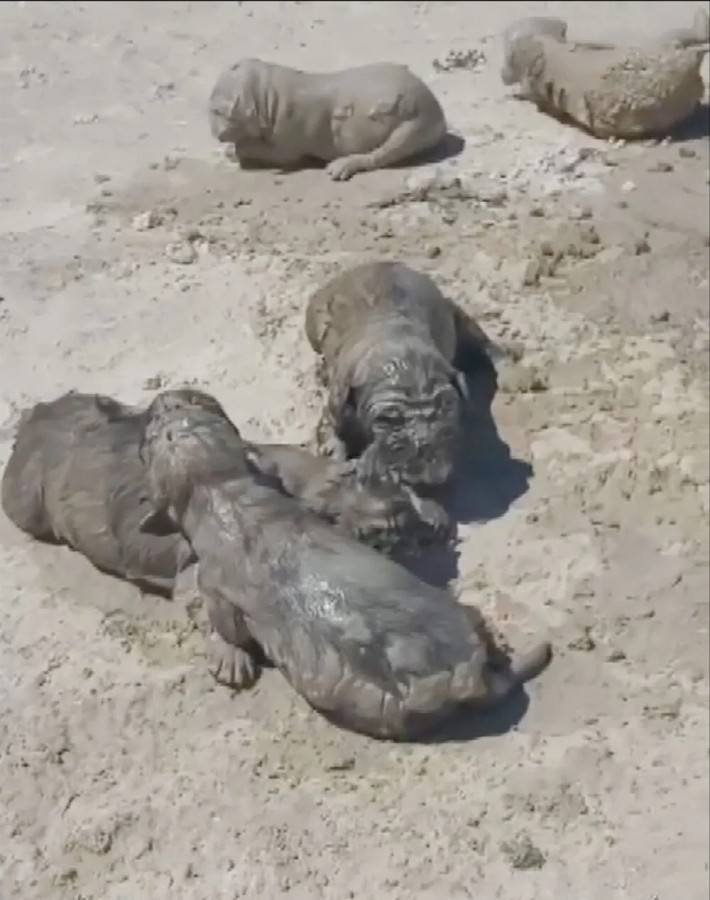 Yavruların üzerine beton atığının dökülmesi ise cep telefonu kamerasıyla kaydedildi. Görüntülerde, anne köpeğin ıslanan yavrularına yaklaşamadığı görüldü.