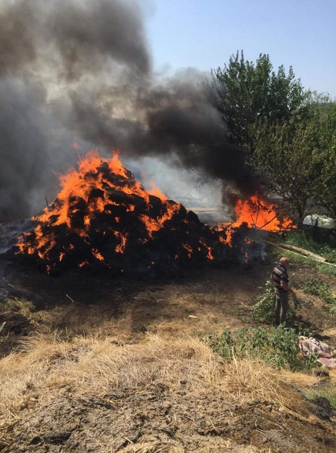 Yangında, toplam 4 bin saman balyası, 1 traktör, sera ve sera malzemeleri kullanılamaz hale geldi.