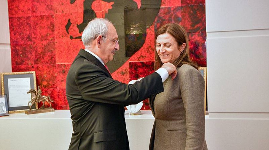 CHP Lideri Kemal Kılıçdaroğlu, Tahir Elçi'nin eşi Türkan Elçi ve oğlu Arda Arin Elçi ile bugün CHP Genel Merkezi'ndeki makamında bir araya geldi. Kılıçdaroğlu, CHP'ye katılan Türkan Elçi'ye parti rozeti taktı.